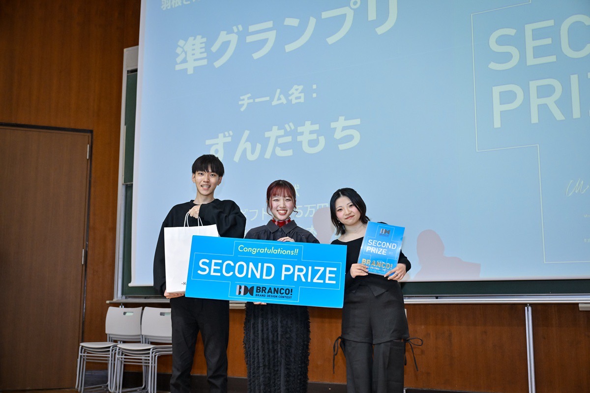 書類審査、一次審査、二次審査、決勝プレゼンを経て、生活デザイン学科の学生チーム「ずんだもち」が準グランプリを獲得しました。
